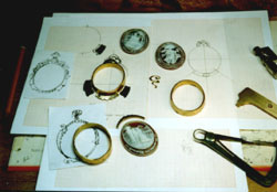 E' chiaro che per una perfetta eseguzione bisogna avere chiara l'idea di quello che si sta realizzando fin dall'inizio e quindi bisogna realizzare ciascuna tecnica in funzione della successiva; In questa fase i pezzi sono già stati impostati e si comincia a pensare a come metterli insieme e realizzare il gioiello. |