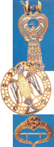 On the enamel can be applied decorative drawing obtained by pure metals, stainless, like silver, gold, platinum, in plates o reduced in very gloss thin layers. To increase the decorative effect it can also be covered by clear enamel. With this method we can imitate the precious stones, filling the cavities with clear enamel conveniently tinted. On the clean and smooth basin, we apply a layer of Arabic rubber or tragacanth: before it dries out, we are will apply the metallic ornament maybe with the help of a wet brush. We can then put the object in the oven with a moderate temperature, sufficient to fix the drawing applied without causing the sinking in the enamel. Then it will be covered with a double layer of flux or with convenient colored enamel, so to obtain particular effect evermore different |