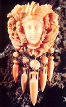 Coral, the "tree of seas" as it is often called, revered in ancient times as a magical stone united within it the three reigns: animal vegetal and mineral. For centuries, naturalists thought it was a marine plant that petrified when it was removed from water. It was only around 1700 thanks to the studies of Marseilles-based doctor Peysonnel that this red gem was in fact a marine animal. The numerous species and genders of coral are none other than a scaffolding, a type of ramified endoskeleton that is secreted by a marine colonial coelenterate that lives in warm and temperate waters. Its nature is the same for coral from every origin and colour - for Asian deposits, Polynesian ones, African, Mediterranean. Colours range from whites to reds to oranges, fiery red and dark colours right up to black. Among organic materials, corals were among the most sought after, following ivory, bone and amber. It was discovered in neolithic times as rough shaped branched clumps. In Catal Huyuk in Central Anatolia, examples of Mediterranean coral have been found that date back to about 6,000 years before Christ. Like amber, Coral followed thoughout the centuries well established trade routes through the Mediterranean. It was bought to the major coralworking centres in Naples, Sardinia, Malta and Sicily from the Red Sea, and across Asia to Tibet and Mongolia from the Indian Ocean. Until the second iron age, other trade routes took coral as far as the Celtic countries and Brittany. The traditional gathering grounds, however, remain the reefs in the Mediterranean, in Spanish and North African waters, as well as off thecoast of Malta. In Italy, coral is gathered in the Ligurian Sea, around the coast of Sicily and off the shores of the neighbouring islands. In Sicily, the coral is gathered between Sciacca, from where comes the famous orange coral called Fossil Coral, Linosa and Pantelleria. The shores around the Red Sea are replete with the local variety - a pink tubular species, which has been conserved in the predynastic tombs of Abido in predynastic Egypt. Coral-based jewels dating back to the times of Ptolemy have also been found. Coral was also incorporated in Celtic, Central European and Siberian ornaments of the sixth century before Christ. But its use in Rome and Greece, contrary to what one is given to believe, was not widespread. There are few examples of sculpted products like cameos and other cut elements. A few archaic Greek gems were found in Perachora and date back to the sixth century before Christ, while a few sculpted pieces mounted in golden and bronze rings from the first to the third century AD remain. Imitation antique coral jewellery uses materials, from common plastic to glass, dyed shells and coral powder that has been heat pressed and treated with resins. The organic nature of coral makes it mostly impervious to attack from outside agents and for that reason it remains little changed with time. However, any object made of coral will after, centuries dehydrate and change colour, although some examples of perfectly conserved corals exist. Abnormal coloration is mainly due to the possible presence of salts that can colour it, entering the porous structure of the coral from the seabed. A thin flaky film can also form at the surface, caused by chemical alteration of the calcium carbonate into oxide and hydroxide. In ancient strata are also present acid alkaline solutions that can cause a selective corrosion which endow the coral with a pattern of thin undulating microbands. The miracles of nature never cease to amaze us. Coral plays a vital role in helping to maintain the sea's delicate ecological balance during its life. Under the surface of the seas, thousands of little white polyps, similar to flowers with subtle petals live in colonies that are linked by a system of gastro-vascular canals. Day after day they grow, slowly and continually secreting the calciferous structure of the colonies that make up the large barrier reefs. Coral reproduces by budding (asexual reproduction), but also by sexual reproduction, which ends in the generation of individuale that are capable of finding fresch colonies. There are 27 species of coral of which only about five are adapted to use in the jewellery industry. Coral reefs are classified according to their size and appearance. When the reef is inverted with a bollow bottom or book shaped, it is called "prementina". A reef is classified as "chiaia", "chianozza" or "chianone" if the plane of expansion of the column is horizontal. When the branches on one side of the reef grow upwards, it is called a "pettatta", while "mazzarello" or "maciottolo" coral tends to cover the whole of a large clump of rocks. In the Mediterranean, coral can be found at dephts of 25- 200 metres, but lives at 400 metres under the surface of the sea in the case ofasian deposits. Recently, two new varieties of coral Garnet and Deep Sea, which are still not classified as species, have been found in the Pacific Ocean close to the islands of Midway and Hawaii. Deep Sea can grow at depths of 800-2,000 metres, rendering its precise morphological study difficult and as well as its exploitation. The differences between Mediterranean coral and its Asiatic counterpart are clear-cut. The Mediterranean variety is bushshaped and its colouring is a more florid or vivacious one. It is generally gathered when the colony is in full expansion. The Orient, on the other hand, offers a fanshapped coral that grows among one plane only and is harvested when growth of the colonies is near its end. For this reason, Asian coral are often referred to as decayed or dead while the colours are far more varied and often presents white vein-like stains. Both varieties are equally attractive and can be for all types of fashioning. However Mediterranean coral especially the Italian variety is rarer and more in demand, not least in Torre del Greco, the capital of coralworking. |